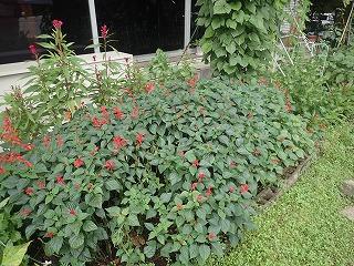 今日は8/26(月)、夏休みも残り1週間となりました。写真は、ライブリー農園の様子です。サルビアやケイトウなどの草花も猛暑に負けず元気に育っています。土の養分不足か日陰のための日照不足か、成長の芳しくないゴーヤーもやっとひとつだけですが実をつけました。