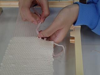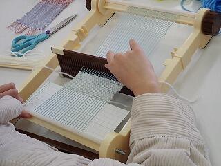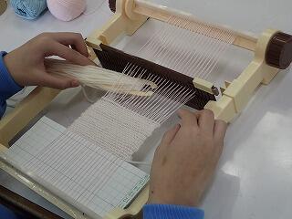 ライブリー教室には、2名の通室がありました。午後の創作活動で手芸を行い、機織り機を使って手作りコースターづくりに挑戦しました。縦糸を張るのが難しくて苦労していましたが、上手に織ることができました。
