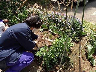 農園のサヤエンドウがつるを伸ばし始めました。棚を設置し、上に伸びられるようにしました。ブラックベリーは奥の木々の中の方まで伸びていたので、農園の中の新しい芽を残して伸びやすい環境を整えました。どんな実がなるか楽しみですね。