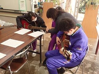 ギター体験教室(12月25日) 投稿日時 : 2024/12/25 もおかライブリー教室 ギター体験教室を行いました。通室生からの希望が寄せられ、職員の知り合いの先生が急遽指導を引き受けてくださいました。ギターの仕組みや弦・コード・引きk他などの説明を受け、ギターを貸していただいて実際に弾く体験をしました。はじめは弦を押さえるのに苦労しましたが、だんだんきれいな音が出るようになってきました。最後は指導してくださった先生と経験のある生徒のギター伴奏でスピッツの『チェリー』を歌いました。 明日から冬休みです。風邪など引かないよう気をつけて、楽しい冬休みを過ごしてください。どうぞ良いお年をお迎えください。