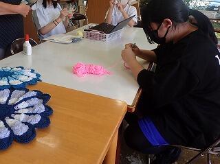 手芸(9月17日) 投稿日時 : 09/17 もおかライブリー教室 手芸をしました。毛糸で鎖編みをしたものを、工作用紙で作った型やモールで作ったリング等に巻き付け、ミニチュアを作りました。かわいい飾りが出来上がりました。
