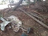 落ち葉掃除 その3 投稿日時 : 2018/07/03 もおかライブリー教室 〈6/28の出来事〉 すでに、ビニール袋で40個以上の落ち葉や枝やその他ごみを捨てています。ライブリー教室の東側、今日はフェンス際にうずたかく山となっている落ち葉をと枯れ枝を撤去しました。中から出てきたのは、ご覧のようなもの。ほうきや魚すくいの網、植木鉢、スチールの支柱など、それに朽ち果てた木製のテーブル。落ち葉の下で水分を含んでいるので、乾かしてから処分する予定です。
