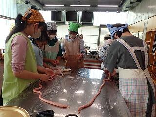 社会科見学・なががわ水遊園(9月26日) 投稿日時 : 09/26 もおかライブリー教室 真岡教室・二宮教室合同でなかがわ水遊園に行ってきました。午前中は館内を自由見学したり釣り体験をしたりして過ごしました。午後は、ソーセージづくり体験をしました。専用の道具を使って挽肉を羊の腸に詰めました。均等に詰めるのが難しかったです。お湯で15分加熱した後、桜と砂糖で燻製にしました。出来上がったソーセージをその場で試食しました。味は格別でした。