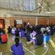 焼き芋が焼けるまでの時間は、敷地内の落ち葉掃きをおこない、短時間で学校敷地もとてもきれいになりました。