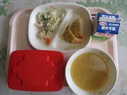 今日の給食は「春巻」「にらともやしの和え物」「マーボーラーメン」でした。