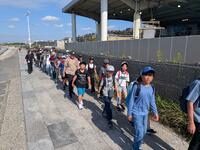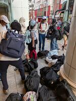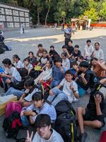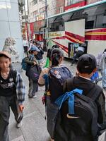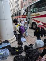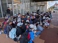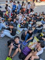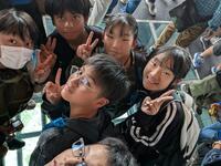 修学旅行にみんなで出発しました。どの子もうれしそうな顔をしていました。