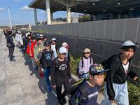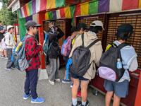 仲見世で、お土産を買う姿がありました。