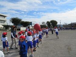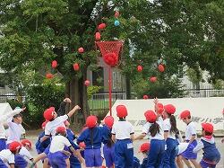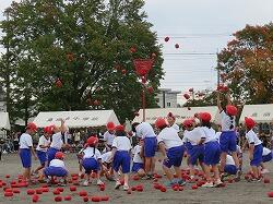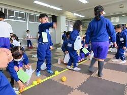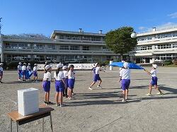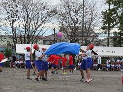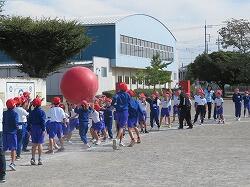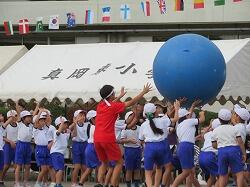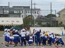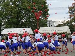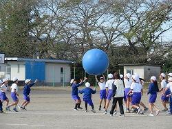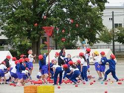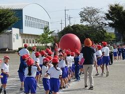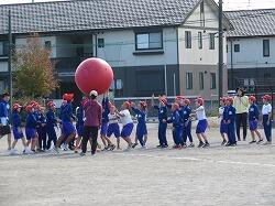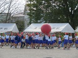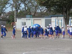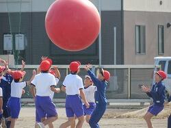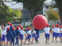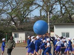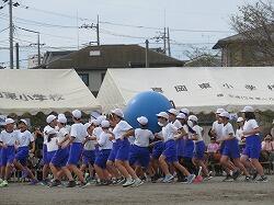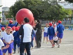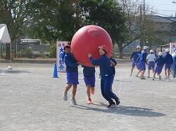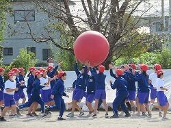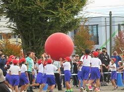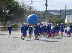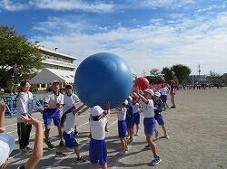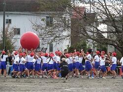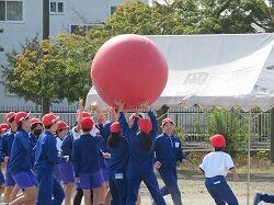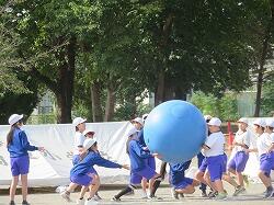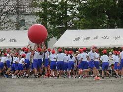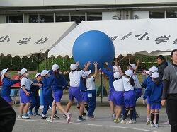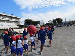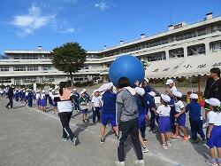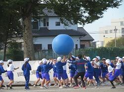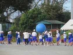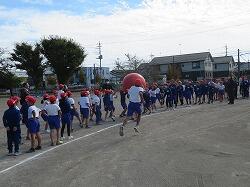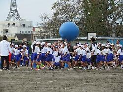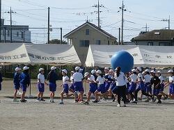 全児童の力を合わせて、大玉を運びます。
