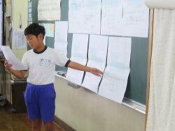友達の発表を真剣に聞く子供たち。