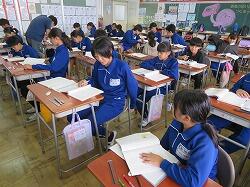 今朝は、6年生教室でハーモニータイム(読み聞かせ)がありました。