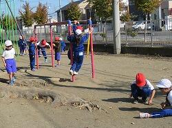 温かい日差しの中、外遊びを楽しむ東っ子たちがいました。