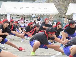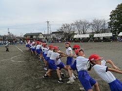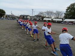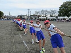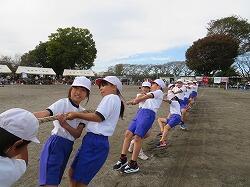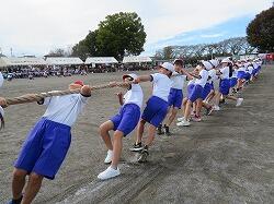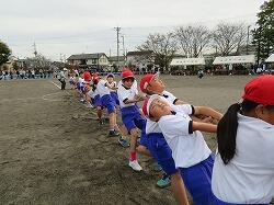 3・4年生の団体種目です。綱を力いっぱい引きました。