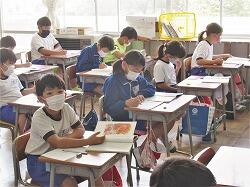 最初に、1年、3年、5年生の代表児童が作文発表を行いました。