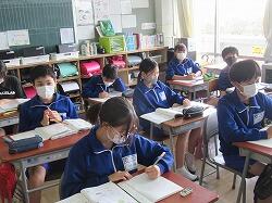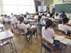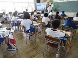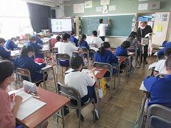 <6年3組> JTEとAETによる外国語の授業におじゃましました。1学期の外国語の授業の反省をしていました。分かりやすい点、難しい点など反省ができたようです。1学期に学習した内容をよく復習して、2学期の修学旅行で実際に使ってみましょう!