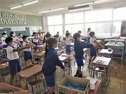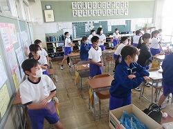 点検業者が体育館に向かうと、体育館から教室に戻る3年1組の子供たちと出会いました。