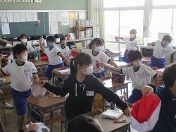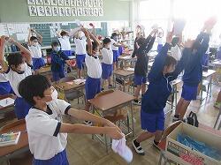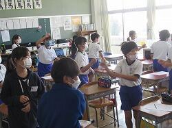 <1年1組> 音楽の授業におじゃましました。歌に合わせて体を動かしたり、手遊びをしたりしていました。1学期の復習です。リズムに合わせて、上手に身体表現できていました。