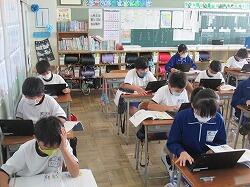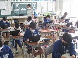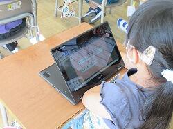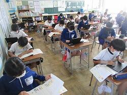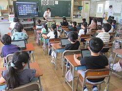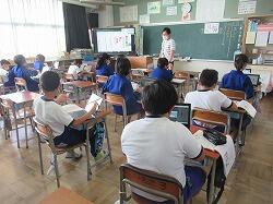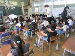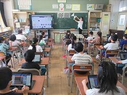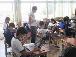 今日まで、子供たちは、インターネットや図書室の本で生きものについて調べたり、調べたことをアプリのシートに入力したり、写真を撮って取り込んだり、クイズを作ったりしていました。タブレットを使った発表の仕方も練習していました。