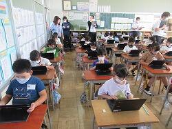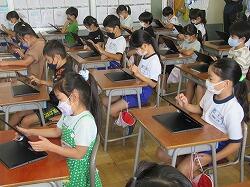 <3年1組> 3年生も夏休みにタブレット端末を持ち帰ります。今日は、ログインパスワードの変更を行いました。何回か入力を繰り返して、覚えてしまった子がたくさんいました。本当に子供たちの吸収力は素晴らしいです!夏休みも使用のきまりを守って、活用してほしいと思います。