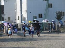 今日は降ったり止んだりの雨模様でしたが、昼休みは外で遊ぶことができました。