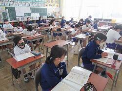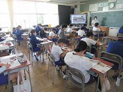 <3年3組> 学級活動の授業におじゃましました。お楽しみ会のチーム分けをしていました。全員で、トランプ大会のようです。ババ抜き、七並べ、大富豪…、グループごとに盛り上がっていました。楽しい思い出ができましたね!