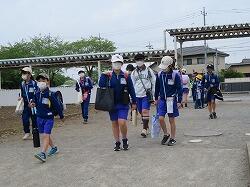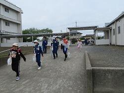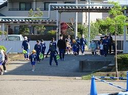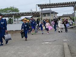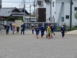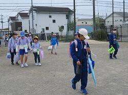 それぞれの班ごとに先生からのお話を聞いて、元気よく大きな声で「気を付けて帰りましょう!さようなら!」、「さようなら!」とあいさつをして、一列になって下校して行きました。