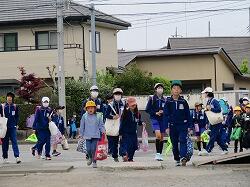 新しい登校班で、安全に登校してください。