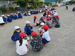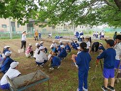 生活科で「こうていたんけんに いきました」の学習を進めていました。