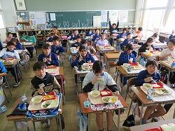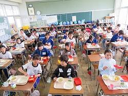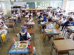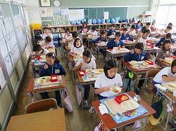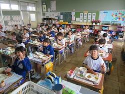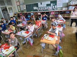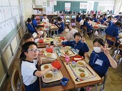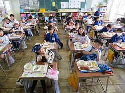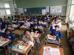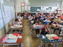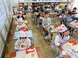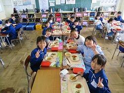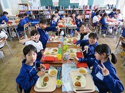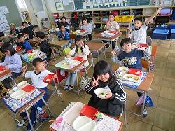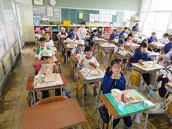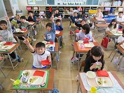 もうすぐ2年生となる1年生の東っ子たちは、今日の給食もとてもおいしそうに食べていました。
