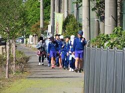 暖かい日差しの中、東っ子たちが元気に登校してきました。