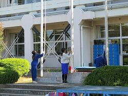 高学年は、朝から入学式の片付けを進んで働いていました。すばらしい態度ですね。