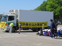 トラックによる左折巻き込み事故防止の実験を見せていただいたり、模擬道路で正しい横断をしたり、安全に生活することについて、学ぶことができました。