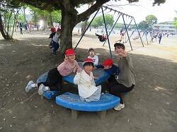 木陰で、先生とお話をしている子たちもいました。
