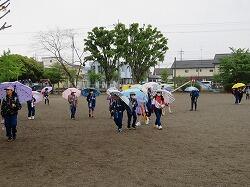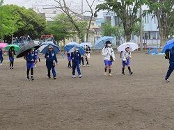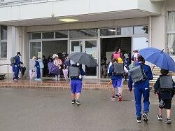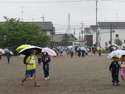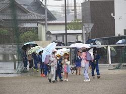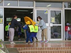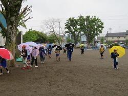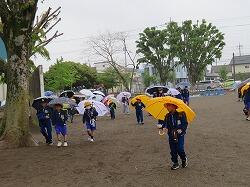 歩き始めて、途中で雨が降り出した子もいたのでしょう。少し濡れてしまう子や友達の傘の中に入る子などもいました。