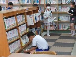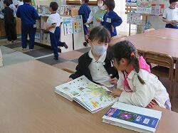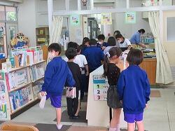 校内の見回りをしていると、図書室に本を借りに来ている子たちがいました。
