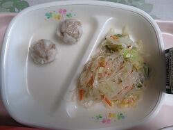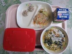 今日の給食は「ポークしゅうまい」「春雨サラダ」「中華コーンスープ」でした。