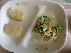 今日の給食は「豆腐ナゲット」「シーザーサラダ」「コンソメスープ」でした。