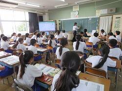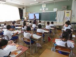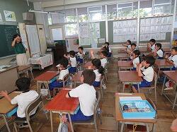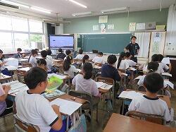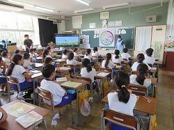 給食センターの栄養教諭に来ていただき、食育の学習をしました。