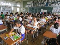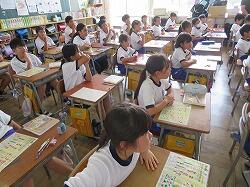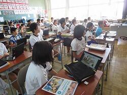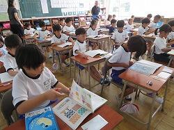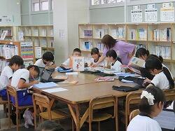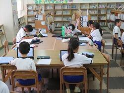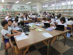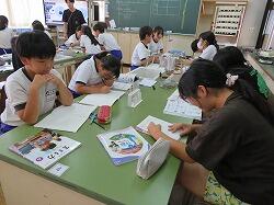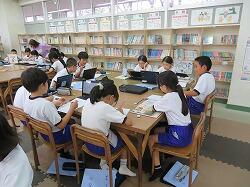総合的な学習の時間で、図書室で、本やインターネットで、福祉にかかわる内容を調べていました。