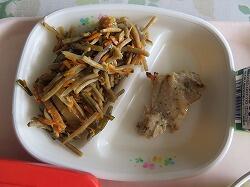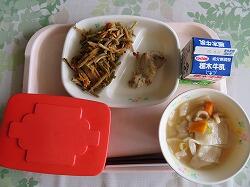 今日の給食は「鶏肉の味噌マヨネーズ焼き」「五目きんぴら」「ひっつみ汁」でした。