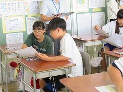 国語で課題解決に向けての話し合いをどのようにしたらよいのか、話し合いをするグループと話を聞くグループに分かれて行っていました。
