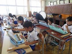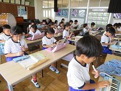 音楽で、「ゆかいな木きん」をリコーダーと鍵盤ハーモニカで演奏していました。