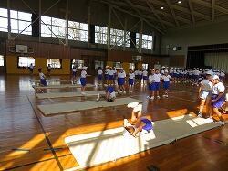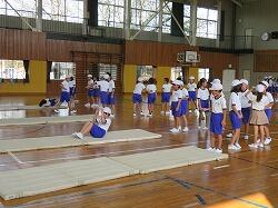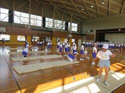 体育の「マット運動」で、前転と後転の練習をしていました。