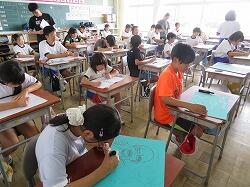 算数で学習した長方形や正方形、直角三角形の作図でした。子供たちは、三角定規や定規を使って、作図にチャレンジしていました。