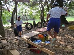 午前中にみんなで協力して作ったアスレチックで遊びました。