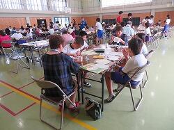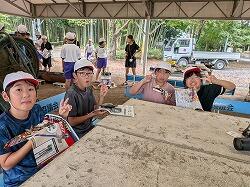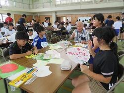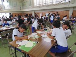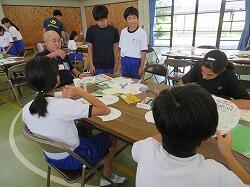 一緒にうちわつくりに挑戦しました。地域の方と話をしたり、うちわの絵をかくために手伝ったりする様子が見えました。
