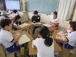 本校では、「自分の考えや思いを表現できる子ども育成」を学校課題として、国語、社会、算数、理科の四教科部会に分かれて、研究を進めています。