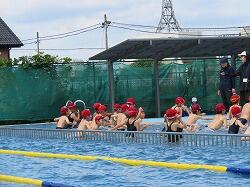 気温も高くなり、ムシムシしているので、プールで水泳学習を行うには、とてもいい日ですね。