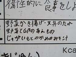 今日の給食は「野菜かき揚げ丼」「野菜と卵のあえもの」「じゃがいもとわかめのみそ汁」でした。