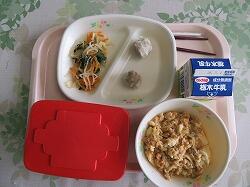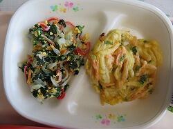 2年生の中には、野菜と卵のあえものをおかわりして食べている子がいました。