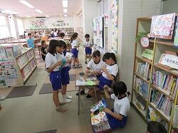 朝会を行いました。今、学校では、読書に親しんでもらいたいと考え、図書室でイベントを行ったり、親子読書を進めたりしています。少しでも子供たちが読書に興味が持てるような話題を朝会では話をしました。